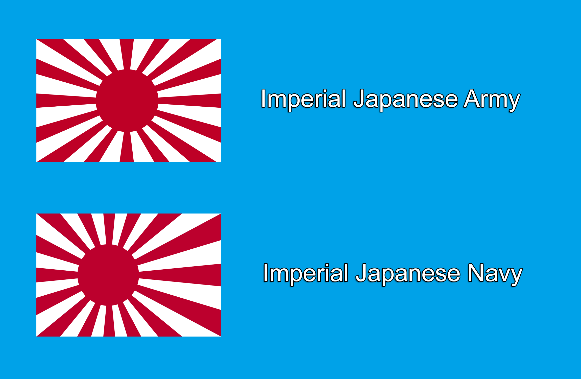 Now the rising sun flag was originally used by the japanese feudal lords back in the edo period 1603 1868 and adopted as the flag of the japanese imperial army during the meji restoration in 1870 and added to the japanese navy in 1889. The imperial japanese army and the imperial japanese navy both had a version of the flag. The naval ensign was off set with the red sun closer to the lanyard side while the army s version which was part of the regimental colors was centered. 127 1999 the sun disc is perfectly centered and is a brighter shade of red.